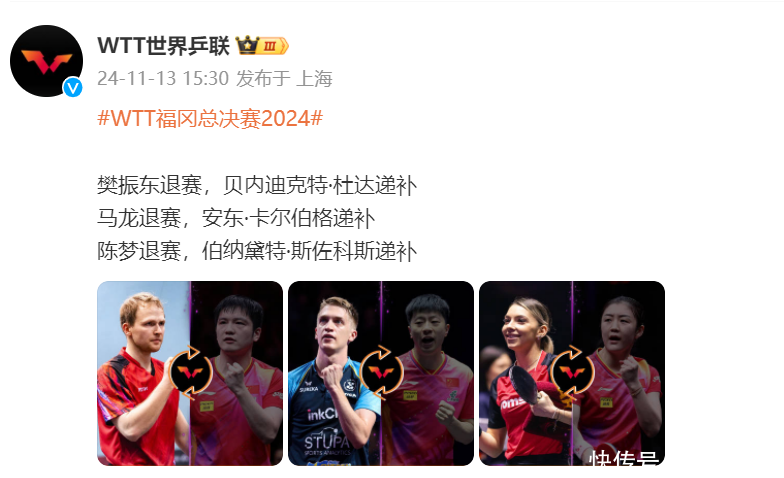 WTT福冈总决赛名单公布,不出不测的是,樊振东、马龙、陈梦退赛,龙队不过问可以连气儿,陈梦也照旧示意我方复出首战是老瓦杯,而樊振东延续缺席照旧激勉了粉丝们浓烈不悦。要知谈,小胖在巴黎奥运会后再也莫得出战国外比赛,但他并莫得退役,在全锦赛男团比赛中还出场了,景况尽头可以,率上海队拿下冠军。尽然还能比赛,为什么这一年皆快终端了,樊振东恒久玩褪色?