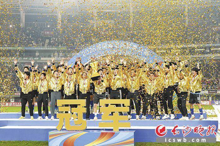 长沙晚报12月27日讯(湖南日报全媒体记者 孙敏坚 蔡矜宜)27日晚,2025湖南省足球联赛(简称“湘超联赛”)在长沙贺龙畅通场献技巅峰对决。进程90分钟的死战,最终永州队以1∶0降服常德队,夺得2025湘超联赛冠军。寰球政协副主席、民革中央常务副主席何报翔到场不雅赛,省委副布告、省长毛伟明为冠军球队受奖。省开导及老同道吴桂英、张迎春、王谈席、刘红兵、杨浩东、周农、蒋涤非、李建中、谢勇,中国工程院院士田红旗,省政府秘书长瞿海不雅看比赛。本年以来,省委、省政府深刻贯彻习近平总布告对于体育和足球使命的艰难指令批示精神,用心规划组织省级足球联赛,14个市州分歧组队插足。进程惯例赛、淘汰赛两个阶段的强烈角逐,永州队与常德队会师决赛。19时45分,决赛负责开动。永州队最初占据场上主动,屡次制造阻止,一波接一波的攻势直到下半场第58分钟调节为比分变化——在一次角球造成的门前围攻中,永州队相接敲门,尽管常德队门将及后卫也献技精彩的扑救和突围,但最终未能抵牾永州队46号谷文杰的头球破门。跟着终场哨响,永州队以1比0的比分取得桂冠。全场顷刻间答允起来,欣慰声、高歌声此伏彼起。